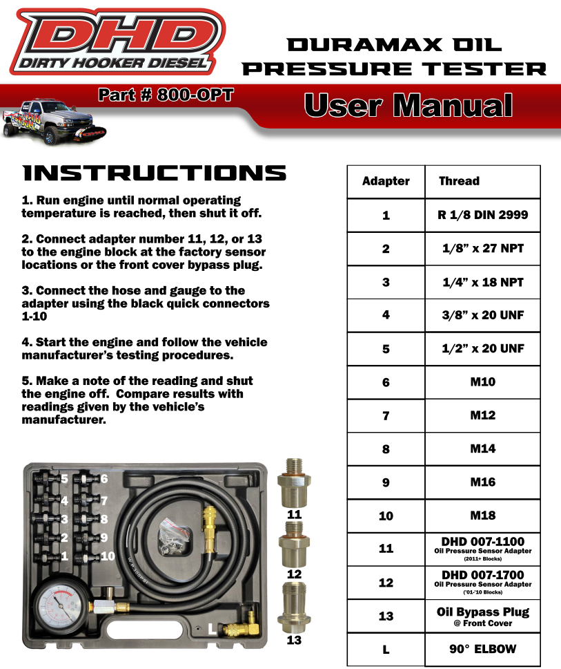 800-OPT Duramax Oil Pressure Test Kit Users Manual
